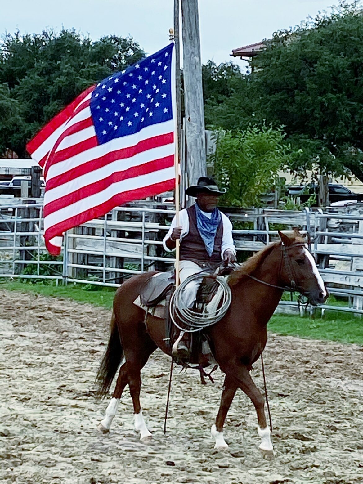 Fort Worth Herd Drover Donald Lee prepares to carry the U.S. flag on The Herd’s cattle drive Friday in the historic Fort Worth Stockyards in honor of the 19th anniversary of Sept. 11, 2001, when terrorists hijacked passenger planes and crashed them into the Twin Towers in New York City. Fort Worth is the only city in the world that has twice-daily cattle drives. The cattle drives, which are at 11:30 a.m. and 4 p.m., every day (362 days of the year), are a big hit with visitors to Fort Worth from all over the world. Donald Lee represents the black drovers who rode on cattle drives during the 20-year span that began around 1866. Please like the Fort Worth Herd’s page on Facebook.